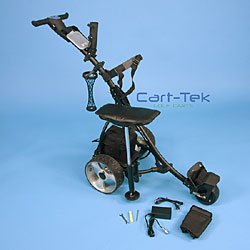 If you want everything except remote control, then the GRX-800 is the cart for you. Powerful 240 Watt motor and top of the line 36 Ah SLA battery give this cart all the power you will need to play 36 holes. Features include full display LCD control panel with battery level indicator, speed and distance control, last speed memory and self diagnostic display. Features: 240 Watt External Drive Motor Power to climb 20 degree slope. 36 Ah SLA Battery Our largest power source - enough power for 36 holes. Folding frame folds with the release of one locking mechanism. Speed Control Choose from 9 different speed settings. Electronic Brake Use Stop/Go function to "Brake" cart. Last Speed Memory Cart remembers last speed setting before "Stop". Advanced Distance Control Set your own "distance" timer. Self Diagnostic Code LCD shows possible issue with connection, high current draw or temperature. Battery Meter LCD displays the power level in your battery at all times. Specifications: Frame- High quality 6061 Aluminum chassis maximizes strength, minimizes weight. Motors 240 Watt External Drive 12 Volt motor. Batteries -Single - 12 Volt SLA Battery - 36 Ah design (Our most powerful). Range - 36 Holes, even on hilly courses. Wheel Diameter Front: 11 1/4 in, 5 3/4 in rear drive wheel - all wheels Maintenance free. Dimensions - 27 1/2 in W x 45 in H x 46 in L. Dimensions Folded - 20 in W x 9 1/2 in H x 35 in. L - with wheels removed. Weight Chassis 21 pounds, Battery: 26.5 pounds, Total weight: 47.5 pounds. Controls -Variable Speed, adjustable distance timer and last speed memory.
